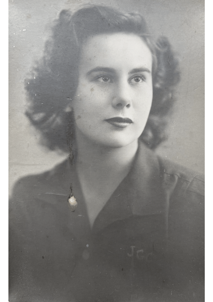 Pam on the left, 1945. Photo supplied by her son-in-law, Peter Dye.