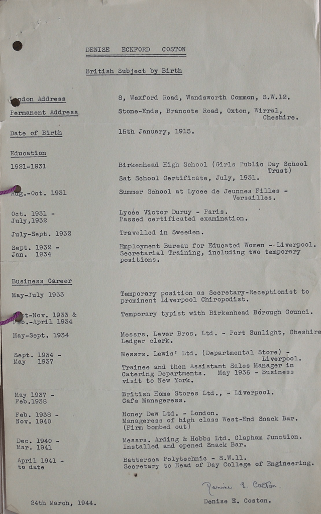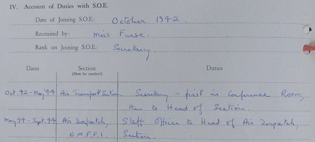 Before joining SOE, Elizabeth worked for the American Embassy, and as a personal secretary for a national coal scheme from 1941-44.