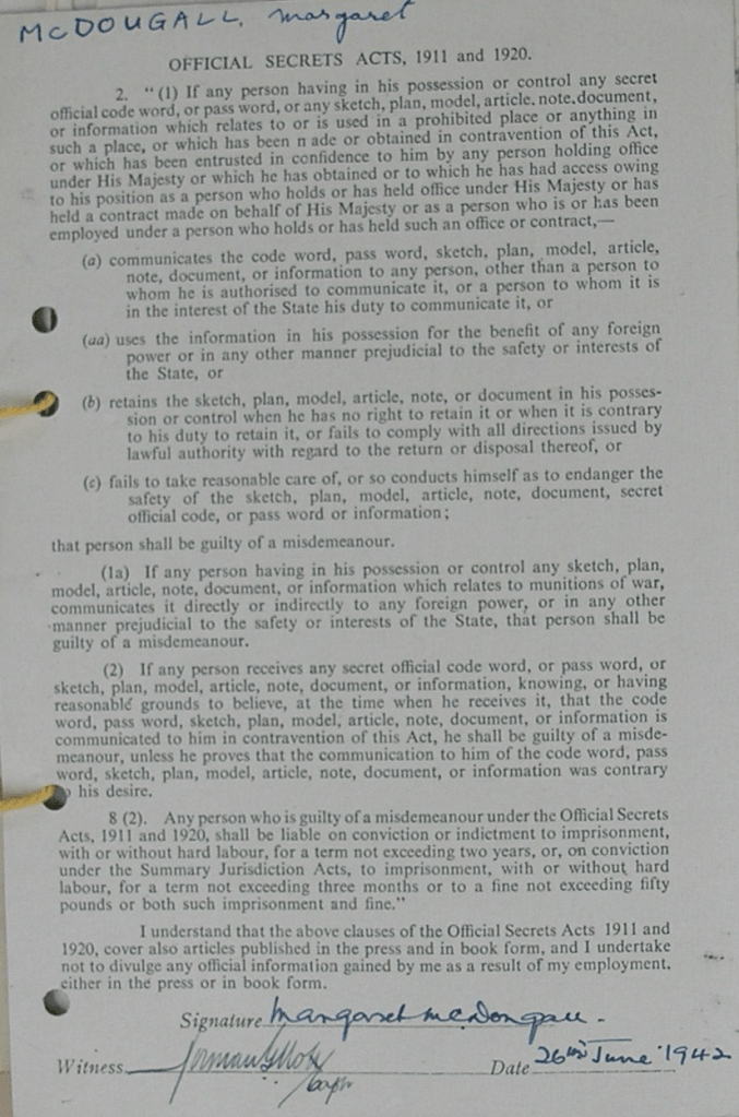 Walker, Irene Margaret, nee Drews: born 14 January 1920 in London, Irene was security checked in May 1944 and employed from 5 June 1944 as a secretary. She left for India on 18 July that year. Until recently, she had been a ‘supervisor of Production of Medi al Supplies’ for a firm called May & Baker Ltd., who were sad to see her go.
