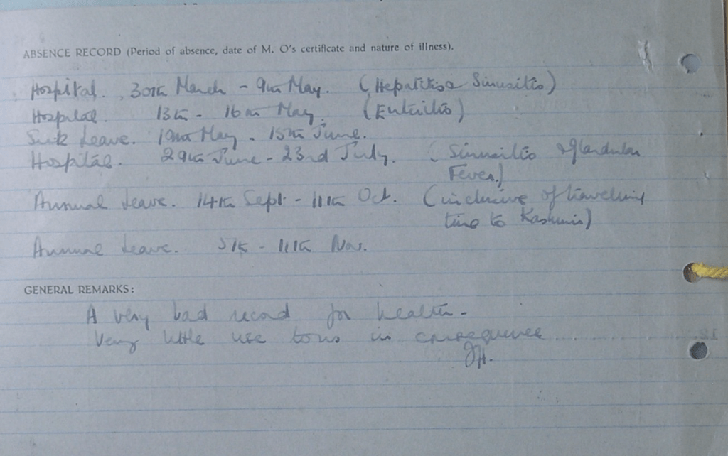Later documents reveal that in India, she was posted to ME 82. Then her file has this: