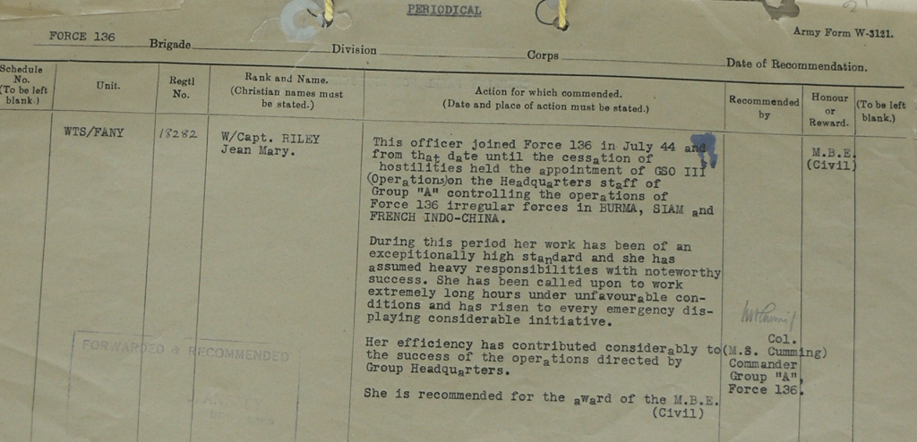 Jeanie’s MI5 trace shows she had worked for one year in the Political Intelligence Department of the Foreign Office. Jeanie was also a FANY.